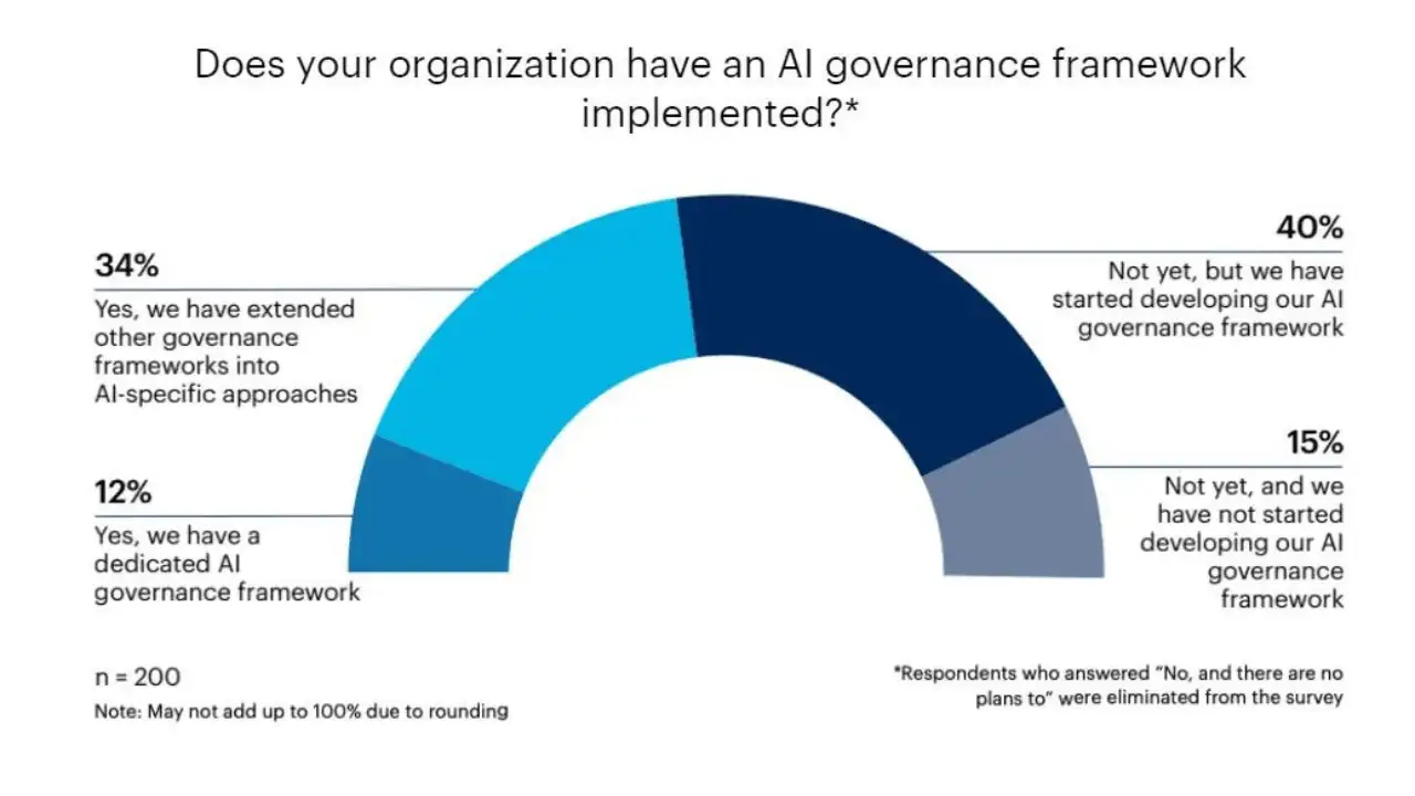 Nearly half (46%) of respondents to a Gartner Peer Community survey indicated that their organizations have already implemented an AI governance framework. This highlights the growing recognition of the importance of structured guidelines for responsible AI development and deployment.