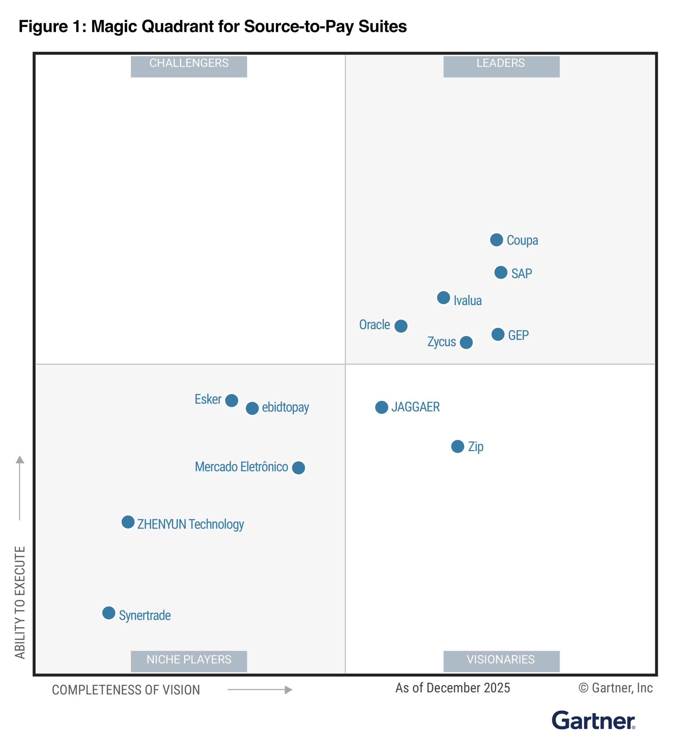 Gartner, Magic Quadrant for Source-to-Pay Suites, Micky Keck, Magnus Bergfors, Kaitlynn Sommers, Alex Brady, Lynne Phelan, 21. Januar 2026.