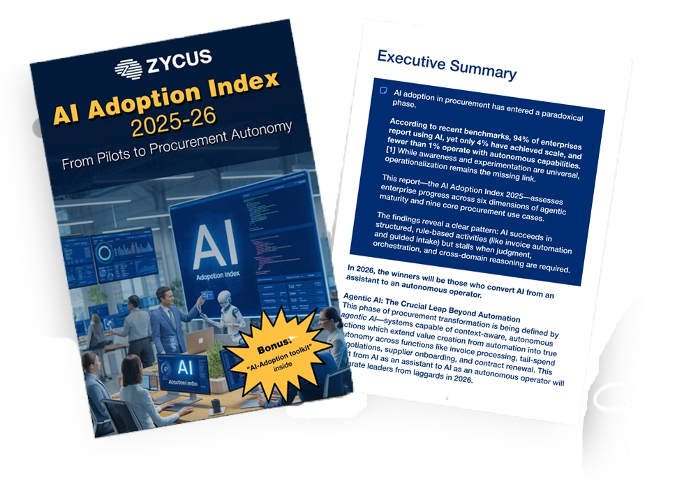 Built on global benchmarks, cross-industry analysis, and Zycusโ deep procurement intelligence, this Index reveals the hidden patterns behind AI progress โ and the barriers leaders donโt see until itโs too late. It exposes the gap between โusing AIโ and โbenefiting from AI,โ and gives procurement leaders a clear, structured way to evaluate their true position on the autonomy curve.